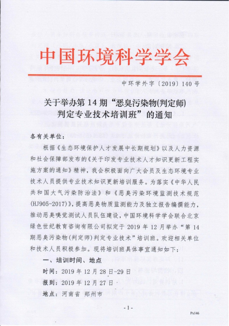 第十四期恶臭污染物监测(判定师)判定技术培训通知