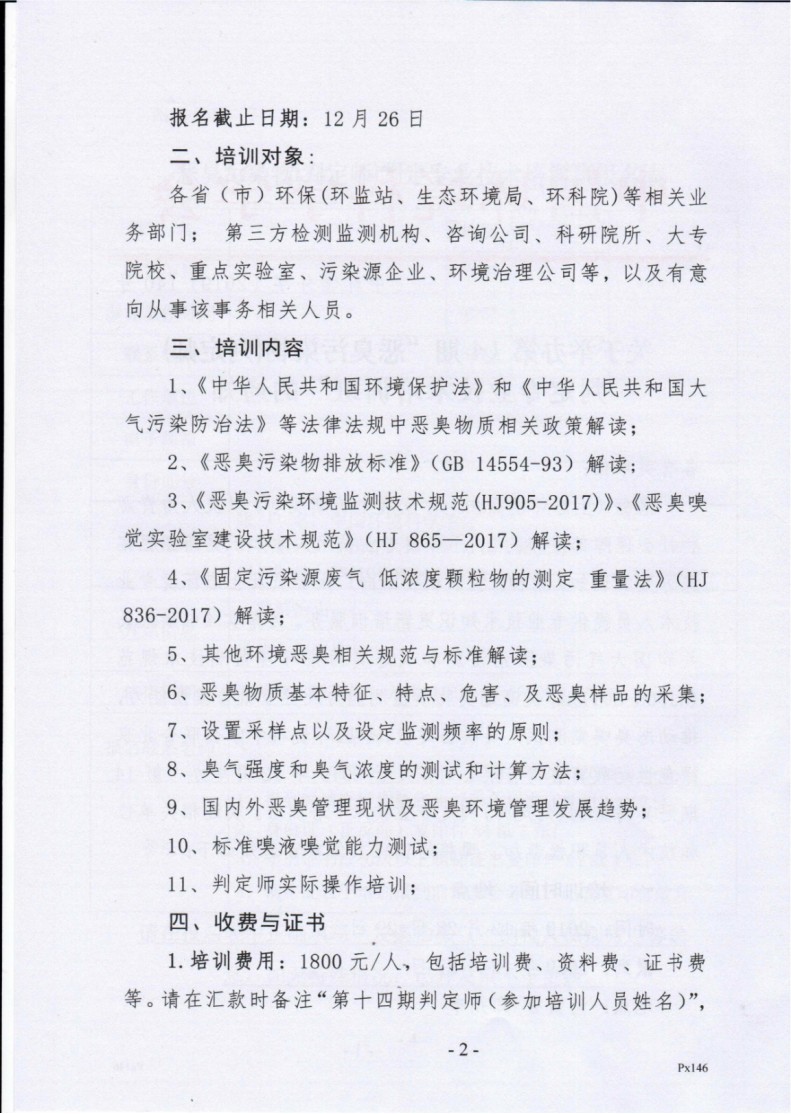第十四期恶臭污染物监测(判定师)判定技术培训通知.doc