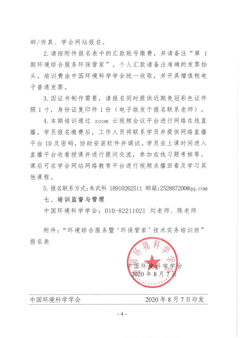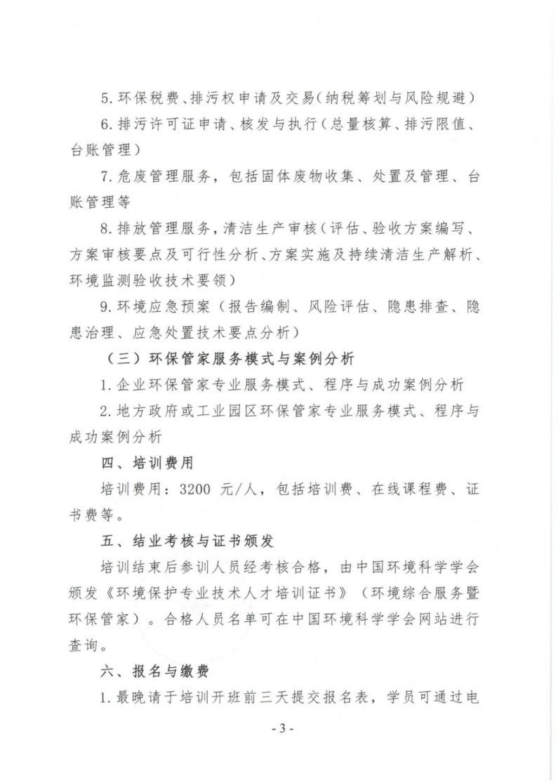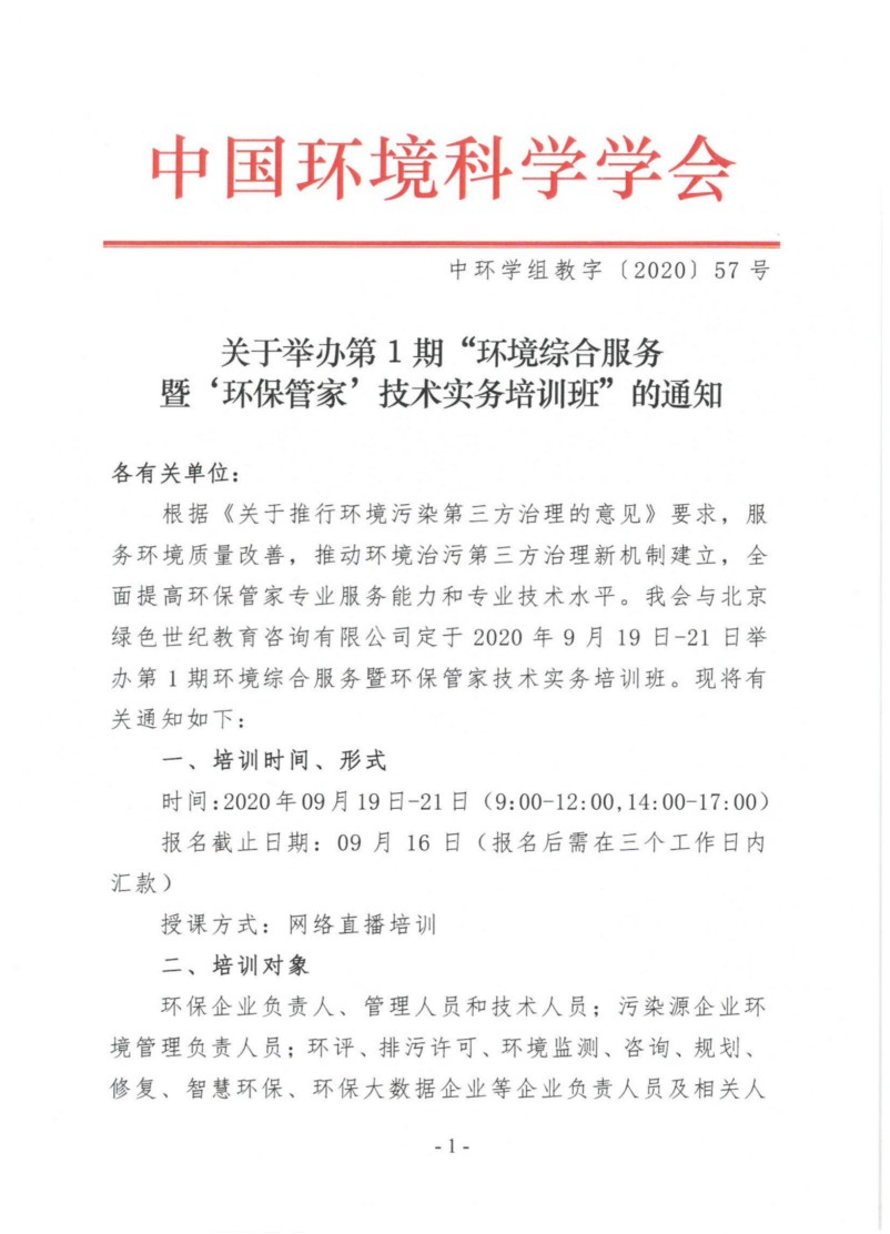 第1期环境综合服务暨环保管家培训班的通知
