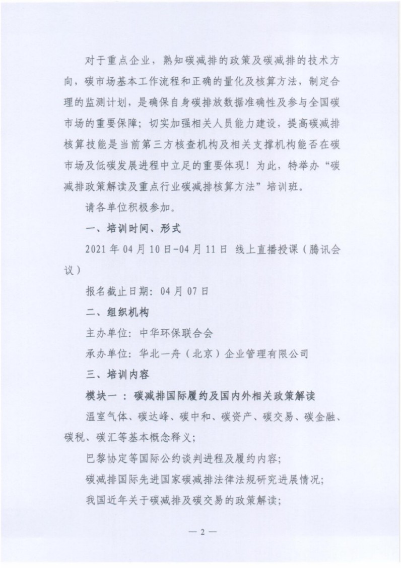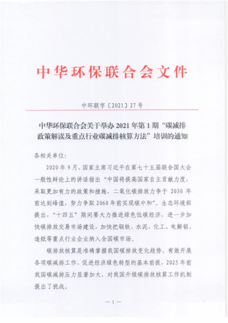 第1期碳减排政策解读及重点行业碳减排核算方法从业人员培训班通知