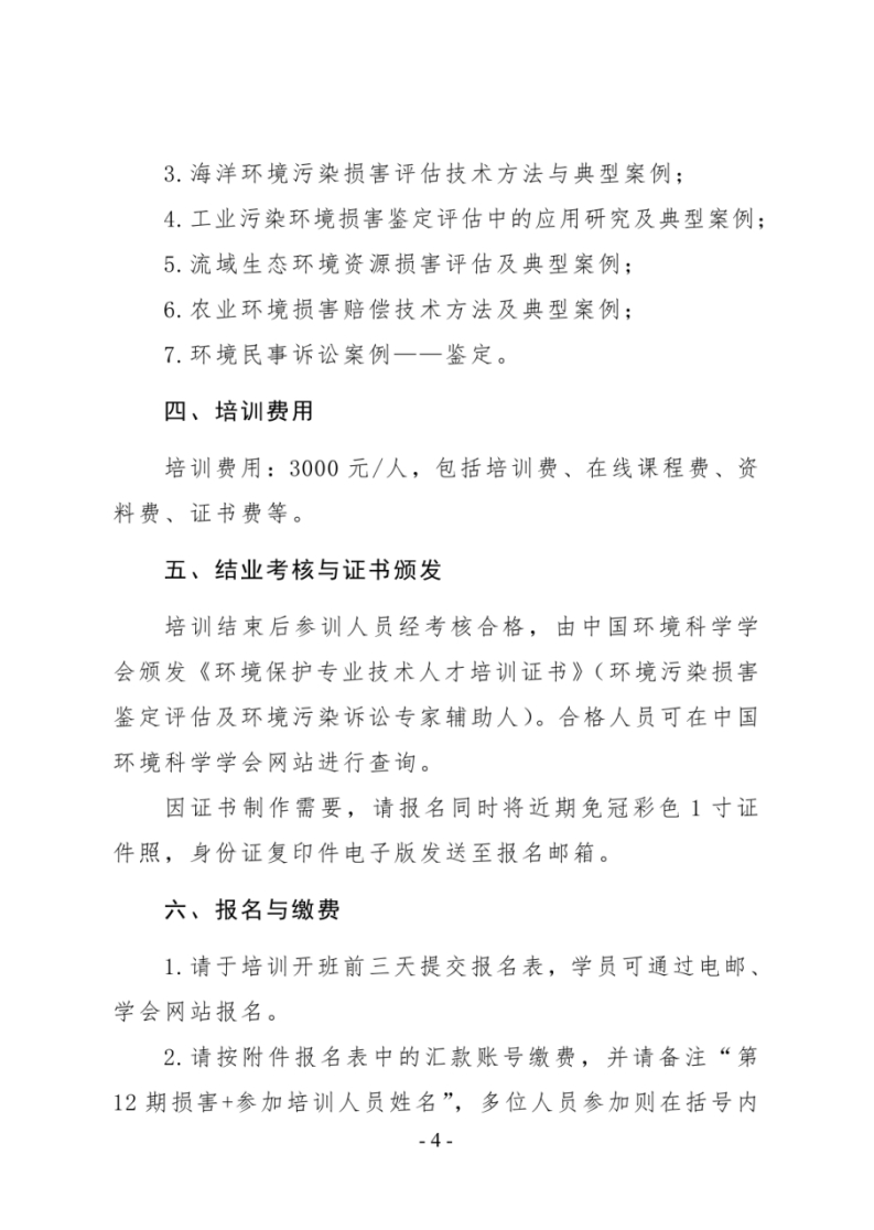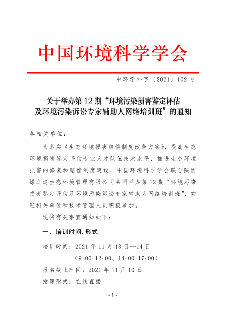 第12期“环境污染损害鉴定评估及环境污染诉讼专家辅助人网络培训班”的通知