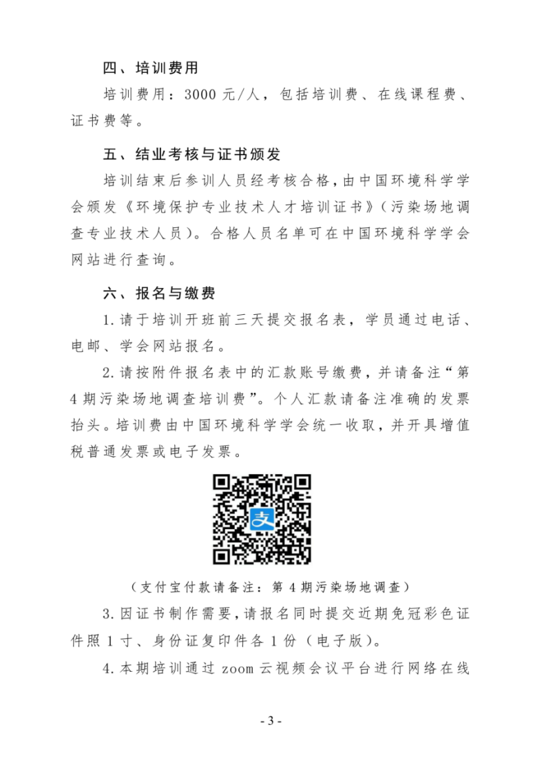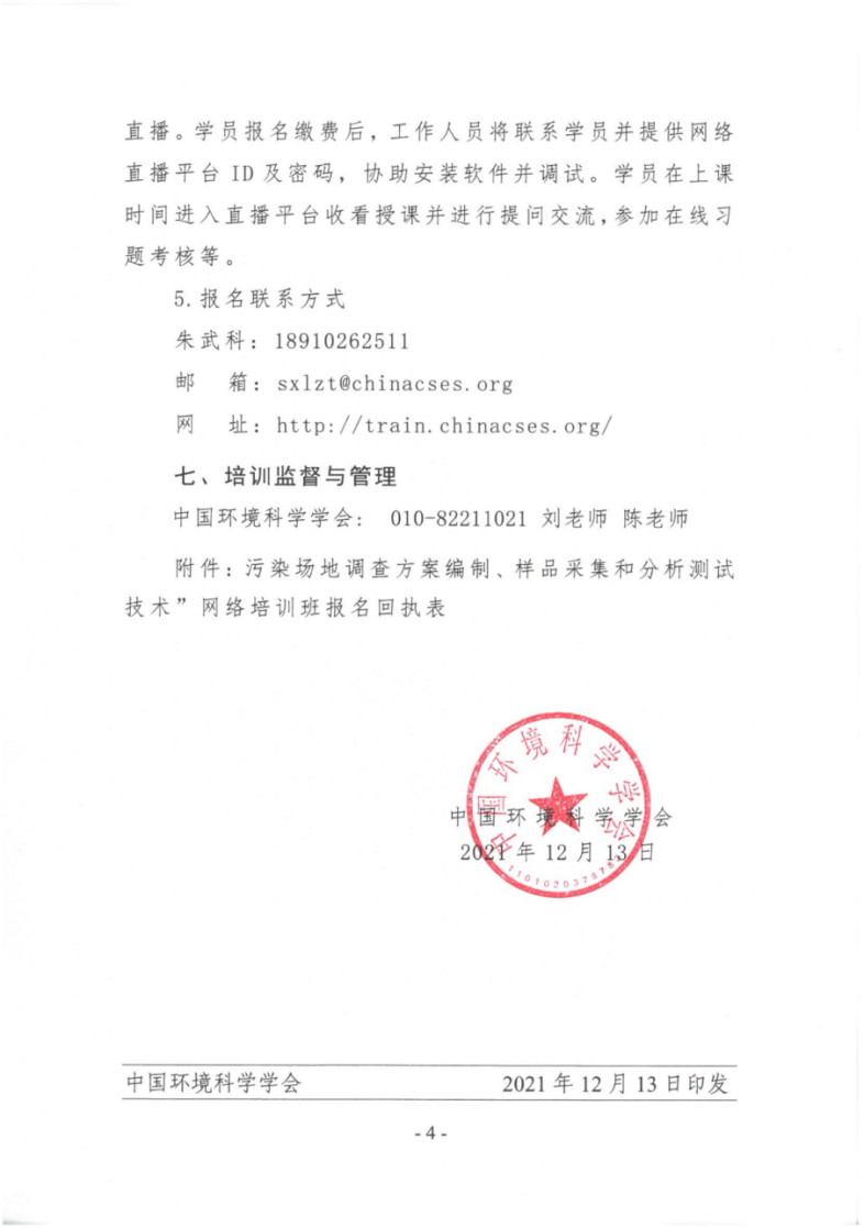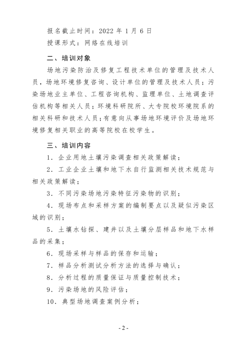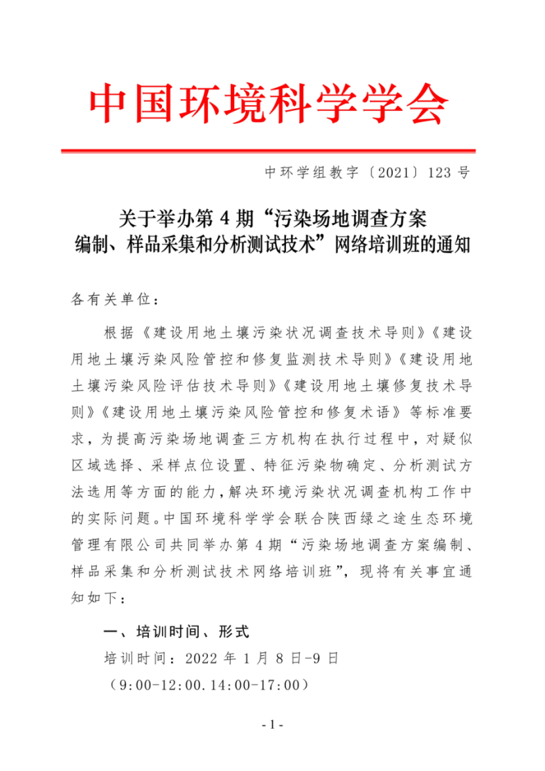关于举办第4期“污染场地调查方案编制、样品采集和分析测试技术”网络培训班的通知