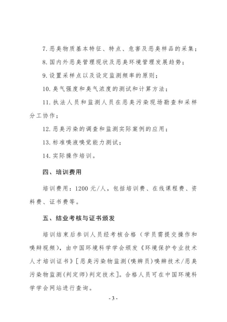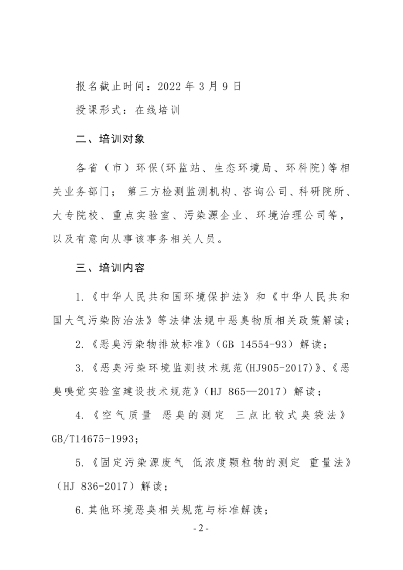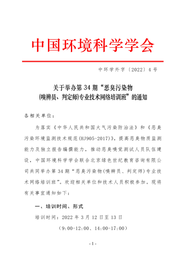 第34期“恶臭污染物(嗅辨员、判定师)专业技术网络培训班”的通知