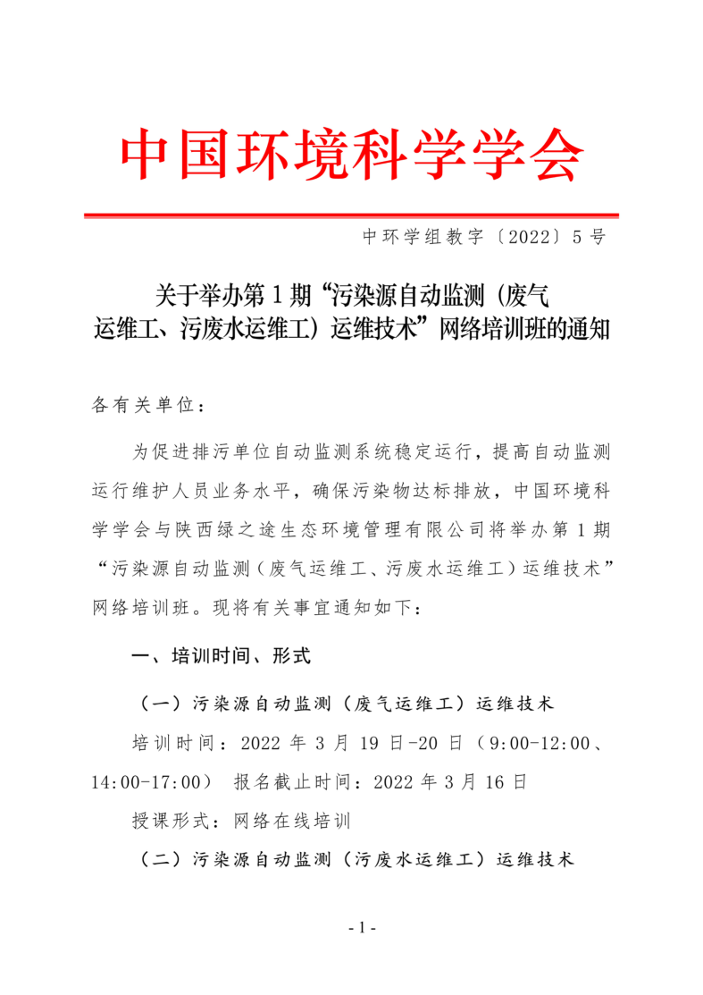 第1期“污染源自动监测(废气运维工、污废水运维工)运维技术”培训班的通知